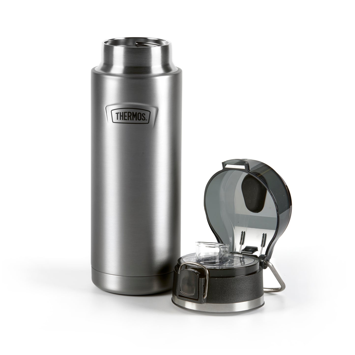 Thermos Vacuum Insulation - A double-wall, airless barrier locks in temperature, keeping drinks hot for 18 hours or cold for up to 24 hours