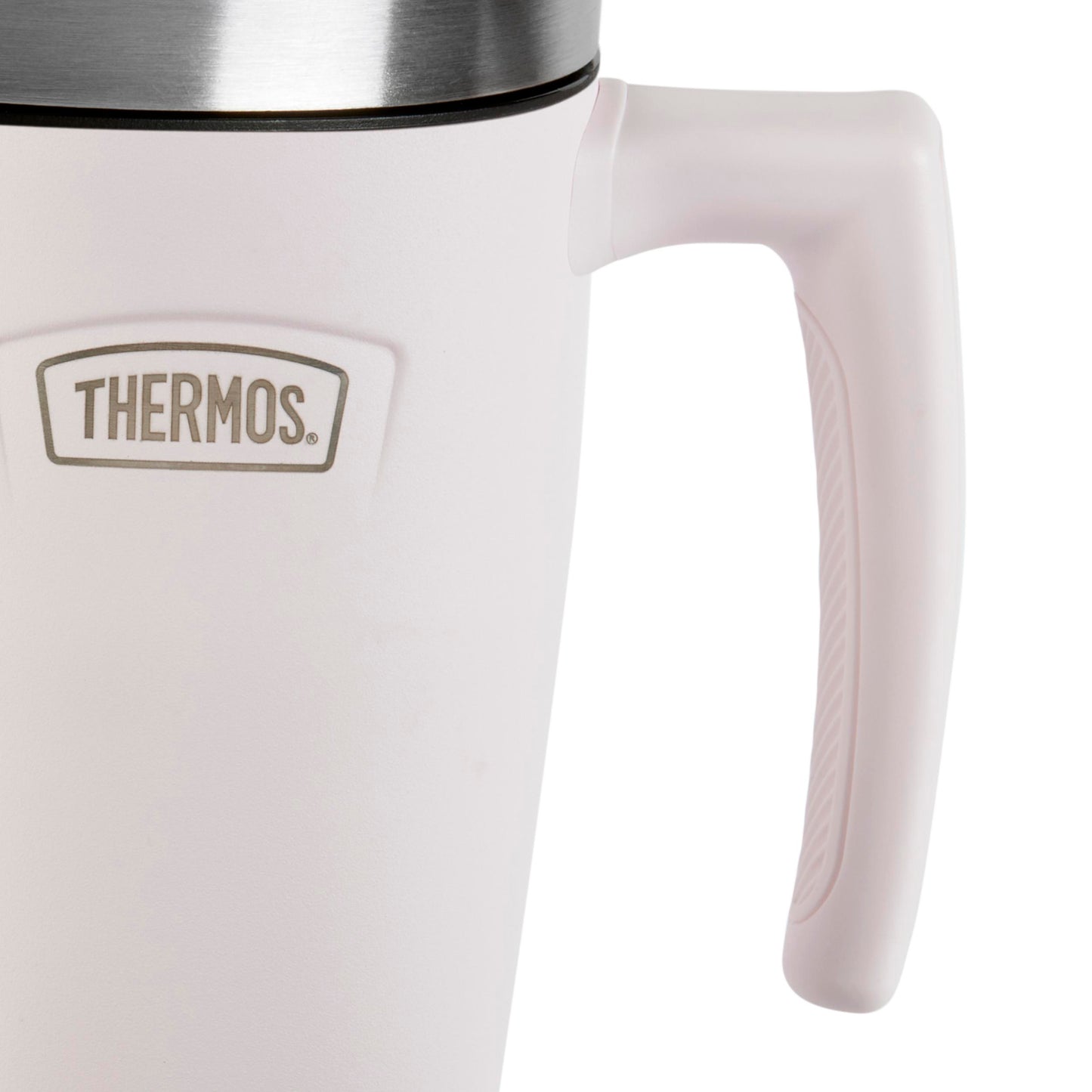 Thermos Vacuum Insulation - A double-wall, airless barrier locks in temperature, keeping drinks hot for up to 7 hours or cold for 22